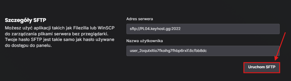 Hasło do SFTP jest takie samo jak do głównego panelu.